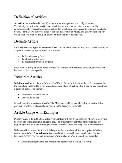 Definition, Articles, And 'Definis' Explained