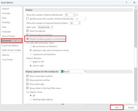 - Check “Disable hardware graphics acceleration”: In the “Display” section, look for the checkbox labeled “Disable hardware graphics acceleration.” It’s often right there, plain as day. Check this box to disable the feature. This tells Excel to use the CPU instead of the GPU for some of its visual processing.