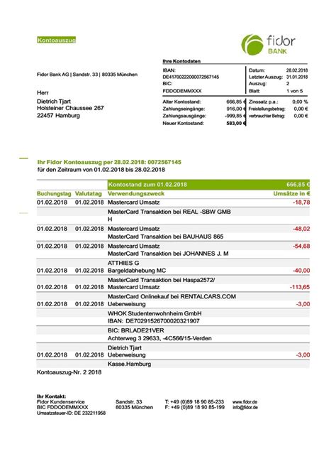 - Review your statement regularly: Make it a habit to check your Kontoauszug at least once a month to catch any errors or unauthorized transactions early.