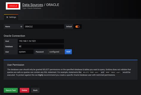 In addition to the basic connection details, you can also configure some advanced settings for the Oracle datasource. These settings allow you to fine-tune how Grafana interacts with your database. Some of the available settings include: