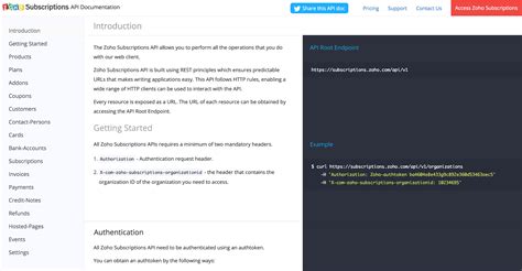 • Read the Documentation: This might seem obvious, but it’s worth emphasizing. The Zoho Subscriptions API documentation is comprehensive and provides detailed information about each endpoint, the required parameters, and the expected response.