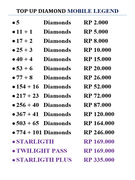 When you’re ready to top up your MLBB diamonds , you’ll notice there are various packages available. These typically range from smaller amounts for a quick boost to larger bundles that offer more diamonds for a lower price per diamond. It’s a classic bulk discount scenario, guys! Generally, the more diamonds you buy in one go, the better the value you’ll get. Mobile Legends often introduces special first-time top-up bonuses or limited-time deals, so always keep an eye out for those. These can significantly increase the number of diamonds you receive, making a larger purchase even more appealing. It’s also worth noting that prices can sometimes vary slightly depending on your region or the platform you’re using (e.g., Google Play Store vs. App Store vs. third-party top-up sites). Before committing to a purchase, take a moment to compare the different package sizes and their corresponding prices. Calculate the cost per diamond for each option to ensure you’re getting the best deal. Sometimes, a slightly larger package might offer a substantial number of bonus diamonds that makes it a no-brainer compared to the smaller ones. Remember, smart diamond purchasing means maximizing your currency for the least amount of cash, and understanding these package dynamics is key to achieving that.