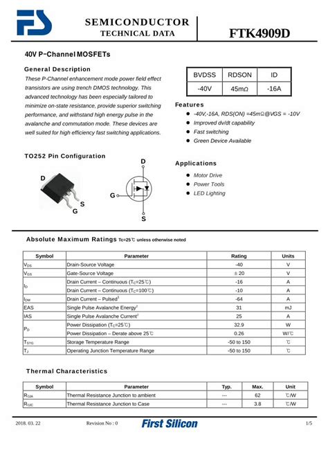 Alright folks, let’s talk about the holy grail of component selection: the datasheet . For any component, including our NDP6020P transistor , the datasheet is your ultimate guide. It’s packed with all the technical details you need to know to use it correctly and effectively. Think of it as the instruction manual written by the engineers who designed it. When you get your hands on the NDP6020P datasheet, don’t be intimidated! Let’s highlight some key sections you’ll want to focus on. First, you’ll see the Absolute Maximum Ratings . This section is critical – it lists the limits that must never be exceeded, even for short periods, or you risk destroying the device. This includes things like V_DS, V_GS, I_D, and Power Dissipation (P_D). Seriously, pay attention to these! Next, you’ll find the Electrical Characteristics . This is where the magic happens. You’ll see tables listing parameters like V_GS(th) (threshold voltage), R_DS(on) (on-resistance) at specified V_GS and I_D values, and leakage currents. Note that R_DS(on) is often specified at a particular gate drive voltage; a higher gate drive voltage (more negative for P-channel) usually results in a lower R_DS(on). Also, look for parameters related to switching speed, such as rise time, fall time, turn-on delay, and turn-off delay. These are often influenced by the gate charge (Qg) and are crucial for PWM applications. Pay close attention to the conditions under which these characteristics are specified (temperature, voltage, etc.), as they can vary significantly. Then there are the graphs . Datasheets are usually loaded with graphs that show how parameters change with temperature, voltage, and current. These are invaluable for understanding the device’s behavior across different operating conditions. For example, you might find graphs showing R_DS(on) vs. I_D, V_GS(th) vs. Temperature, or Safe Operating Area (SOA) curves. Finally, check the package information and pinout . Make sure you know which pin is the Source, Gate, and Drain, and understand the physical dimensions and thermal characteristics of the package. Mastering how to read a MOSFET datasheet is a superpower for any electronics hobbyist or engineer, and it’s essential for properly integrating the NDP6020P into your projects.