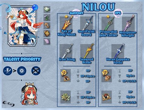 Hey guys! Let’s dive into optimizing your Nilou build. Nilou, the graceful dancer of Sumeru, is a Hydro character in Genshin Impact known for her unique playstyle centered around creating Bountiful Cores. To maximize her potential, understanding the intricacies of her build is crucial. This guide covers everything you need to know, from artifacts and weapons to team compositions and talent priorities, ensuring you get the most out of your Nilou.