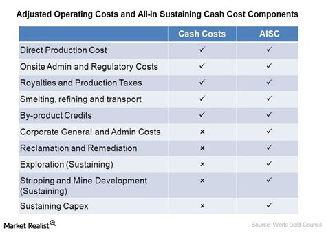 Now, let’s level up to AISC , or All-In Sustaining Costs . This metric is a more comprehensive view, designed to give investors a better understanding of the total cost of maintaining a mine’s current production levels over the long term. It takes the OSPC and adds a bunch of other crucial costs that are necessary to keep the lights on and the operation going smoothly, year after year. AISC includes all those OSPC items we just talked about, but then it layers on expenses like corporate general and administrative (G&A) costs, exploration expenses that are aimed at maintaining current production levels (not necessarily finding new, massive deposits), and the capital expenditures (CapEx) required to sustain the current operations. This can include things like maintaining existing shafts, replacing worn-out equipment, and building infrastructure necessary to continue extracting ore from the same areas. It’s basically saying, “To keep producing this ounce of gold today , and to ensure we can keep producing it tomorrow at this same level, here’s the real cost.” Think of it as the total cost of ownership for keeping that mine humming. For example, if a mine has an OSPC of \(500 per ounce, and it also incurs \) 100 per ounce in sustaining CapEx, \(50 per ounce in G&A, and \) 25 per ounce in sustaining exploration, its AISC would be \(675 per ounce (\) 500 + \(100 + \) 50 + $25). This metric is widely considered a more realistic representation of a mining company’s profitability because it accounts for the ongoing investments needed to maintain production. It helps weed out companies that might look good on OSPC alone but are actually deferring essential maintenance or exploration, which will hurt them down the line. AISC provides a much clearer picture of a company’s cash flow generation and its ability to fund its operations without needing external financing for sustaining activities. It’s the number that truly tells you if a company is generating enough cash to keep its current operations alive and kicking. So, while OSPC is about the immediate cost of production, AISC is about the total cost of maintaining that production stream over time. It’s a more robust indicator of true profitability and operational health.