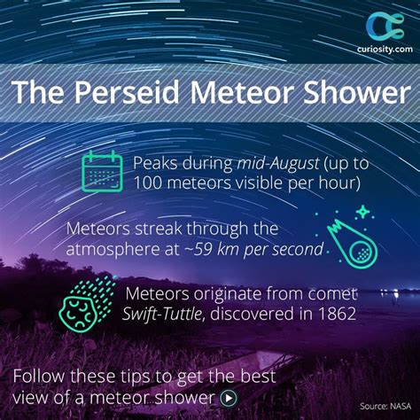 Q4: What is the best time to watch the Perseids? A4: The best time to watch is typically between midnight and dawn, when the radiant point (Perseus) is highest in the sky. Aim for the peak nights, usually August 12th-13th.