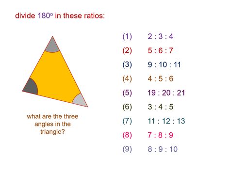 2. Are they in a 2:1 ratio? If we take the larger angle (60) and divide it by the smaller angle (30), we get 60 / 30 = 2. This means the larger angle is indeed twice the size of the smaller angle, fitting the 2:1 ratio. Alternatively, we can see that 60 is double 30.