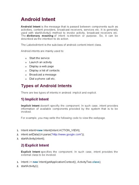 Alright, let’s get down to the nitty-gritty. At its core, an Android Intent is a messaging object that you can use to request an action from another app component. It’s like sending a letter with a specific request inside. This request could be to open a web page, take a picture, share a document, or even launch another specific app. The system then figures out which app is best suited to handle that request and executes it. When we talk about the intent scheme , we’re referring to the structure and format of these intent objects, particularly when they involve specific protocols or URI schemes. For instance, you might have seen tel: for making a phone call or mailto: for sending an email. These are examples of URI schemes embedded within intents.