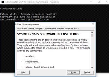 PsExec will then display: Password: You type your password (it won’t show asterisks or dots), and press Enter.