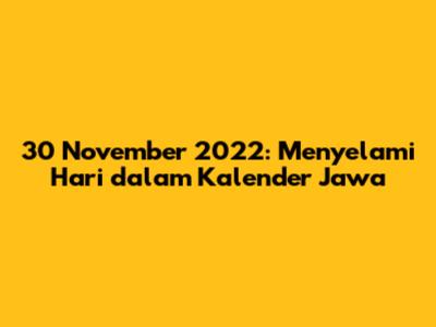 Guys, penasaran kan tanggal 30 November 2022 itu hari apa dalam kalender Jawa? Nah, kita akan kupas tuntas nih! Bukan cuma hari apa, tapi juga watak berdasarkan hari lahir, neptu, dan segala hal menarik lainnya seputar tanggal tersebut. Jadi, siap-siap ya, karena kita akan menjelajahi dunia penanggalan Jawa yang kaya akan makna dan filosofi. Yuk, kita mulai petualangan seru ini!