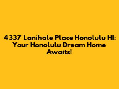 Hey guys! Are you dreaming of owning a slice of paradise in Honolulu? Well, let's dive into the details of 4337 Lanihale Place, a property that might just be your dream come true! Owning real estate in Hawaii is no joke, and places in Honolulu are always in high demand. Finding the right place in Honolulu requires knowing the ins and outs of the market. So, let's explore what makes this address so special and why it should be on your radar. Knowing the details of properties can be exhausting, but that's where I come in to help. We will make sure we touch on all the important points, so you can keep track of what is important. So, buckle up and let's get started on what you need to know. This will be an adventure in discovering the perfect Honolulu home. There are tons of things to keep track of, so we will make sure that nothing is left behind.