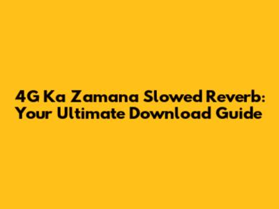 4G Ka Zamana Slowed Reverb: Download Guide