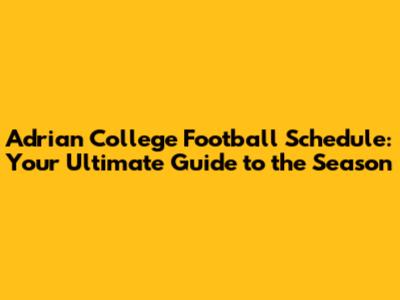 Adrian College Football Schedule: Your Complete Guide
