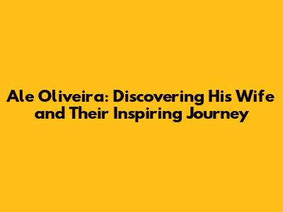 Ale Oliveira: Discovering His Wife And Their Inspiring Journey