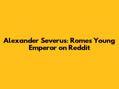 Alexander Severus: Rome's Young Emperor On Reddit