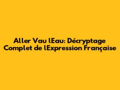 Aller Vau L'Eau: Décryptage Complet De L'Expression Française