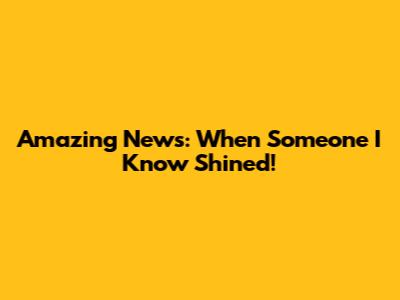 Amazing News: When Someone I Know Shined!