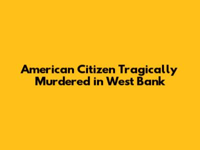 American Citizen Tragically Murdered In West Bank