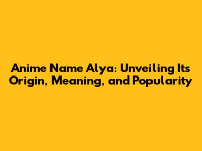 Anime Name Alya: Origin, Meaning, And Popularity