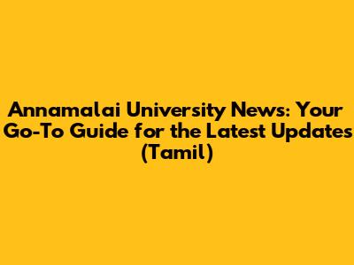 Annamalai University News: Updates & Information (Tamil)