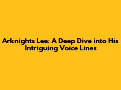 Arknights Lee: A Deep Dive Into His Intriguing Voice Lines