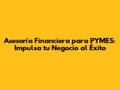 Asesoría Financiera Para PYMES: Impulsa Tu Negocio Al Éxito