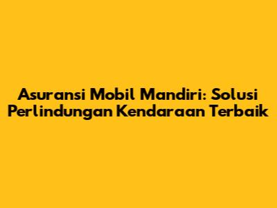 Asuransi Mobil Mandiri: Perlindungan Terbaik Untuk Kendaraan Anda