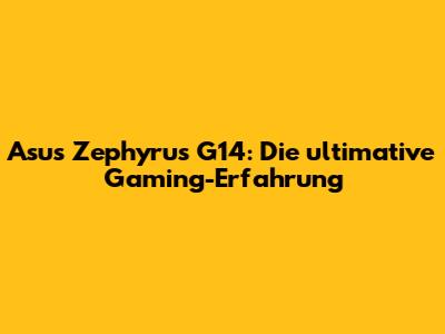 Asus Zephyrus G14: Die Ultimative Gaming-Erfahrung