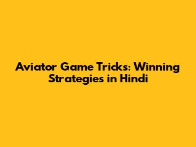 Aviator Game Tricks: Winning Strategies In Hindi
