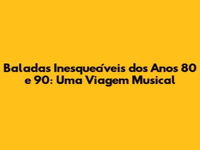 Baladas Inesquecíveis Dos Anos 80 E 90: Uma Viagem Musical