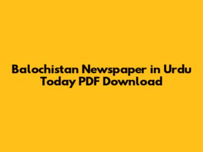 Balochistan Urdu Newspaper: Today's PDF Download
