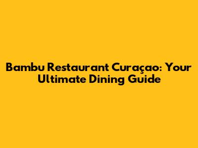 Bambu Restaurant Curaçao: Your Ultimate Dining Guide