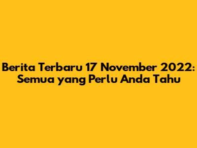 Berita Terbaru 17 November 2022: Semua Yang Perlu Anda Tahu
