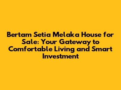 Hey there, property hunters and future homeowners! Are you guys on the hunt for a fantastic house in a prime location with a strong potential for growth? Well, buckle up because we're diving deep into the Bertam Setia Melaka house for sale scene! This area is buzzing with opportunities, offering a blend of modern living and investment potential. Let's explore why Bertam Setia might just be the perfect spot for you and your family. We'll cover everything from the types of properties available to the benefits of living in this vibrant community and the real estate market insights you need to make a smart decision. So, grab your coffee (or tea!), and let's get started!