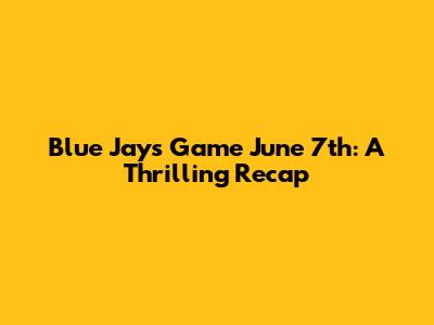 Blue Jays Game June 7th: A Thrilling Recap