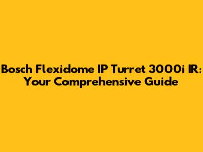 Bosch Flexidome IP Turret 3000i IR: Ultimate Guide