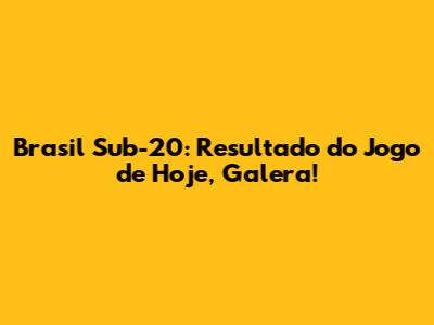 Brasil Sub-20: Resultado Do Jogo De Hoje