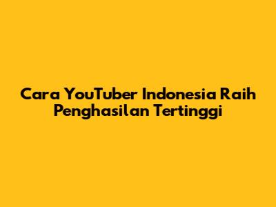 Cara YouTuber Indonesia Raih Penghasilan Tertinggi