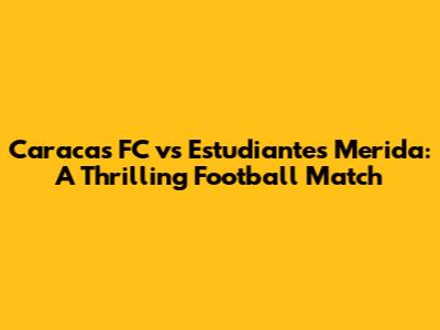 Hey guys! Get ready for an exciting showdown as we dive into the Caracas FC vs Estudiantes Merida match! This is more than just a game; it's a clash of titans in Venezuelan football. We're going to break down everything you need to know, from the teams' histories to what makes this rivalry so special. So, grab your snacks, settle in, and let's get started!