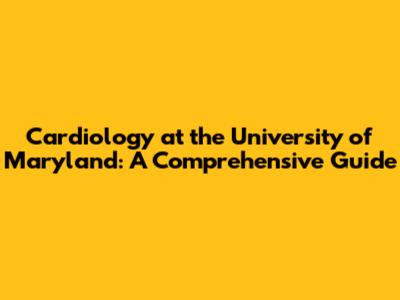 Cardiology At The University Of Maryland: A Comprehensive Guide