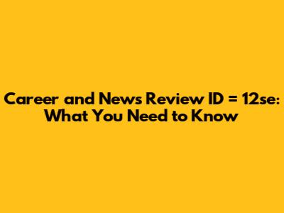 Career And News Review ID = 12se: What You Need To Know