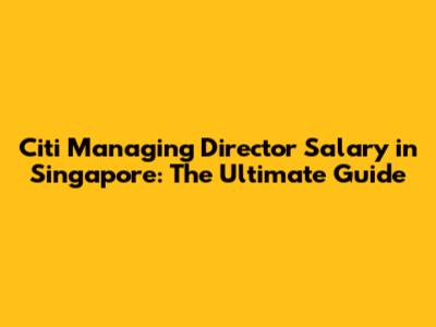 Citi Managing Director Salary In Singapore: The Ultimate Guide