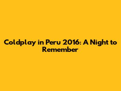 Hey guys! Let's dive into the incredible night when Coldplay rocked Peru back in 2016. If you were there, you already know the magic. If not, get ready to feel like you were! This concert was more than just a performance; it was an experience that resonated with thousands of fans. Let's explore what made it so special.