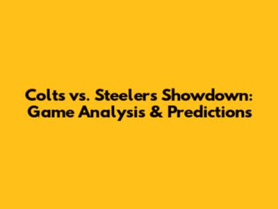 Colts Vs. Steelers Showdown: Game Analysis & Predictions