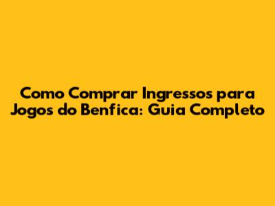 Como Comprar Ingressos Para Jogos Do Benfica: Guia Completo