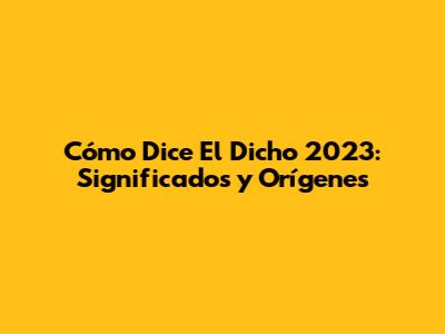 Cómo Dice El Dicho 2023: Significados Y Orígenes