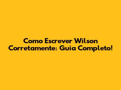 Como Escrever Wilson Corretamente? Guia Completo!