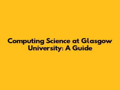 Computing Science At Glasgow University: A Guide