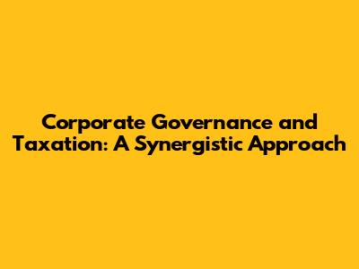 Corporate Governance And Taxation: A Synergistic Approach