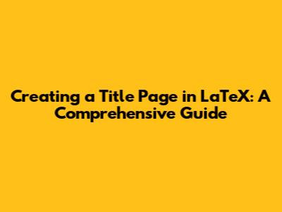 Creating A Title Page In LaTeX: A Comprehensive Guide